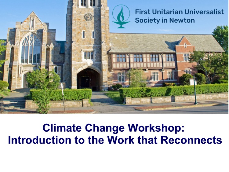 The Climate Action Task Force of the First Unitarian Society in Newton (FUUSN) will host a free climate change workshop — Introduction to the Work that Reconnects — on April 6, 1PM-5PM at FUUSN (1326 Washington Street, West Newton). There is no fee for the workshop. Registration is required. Participants…
