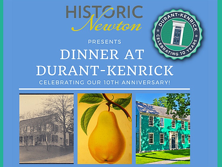 Historic Newton is celebrating its 10th anniversary with dinner and drinks at the Durant-Kenrick House on April 6. Scott Aquilina, who led the architectural team in turning Durant-Kenrick into a museum, will speak about the challenges of preservation and modernization facing historic buildings today. Cocktails at 6PM and dinner at…
