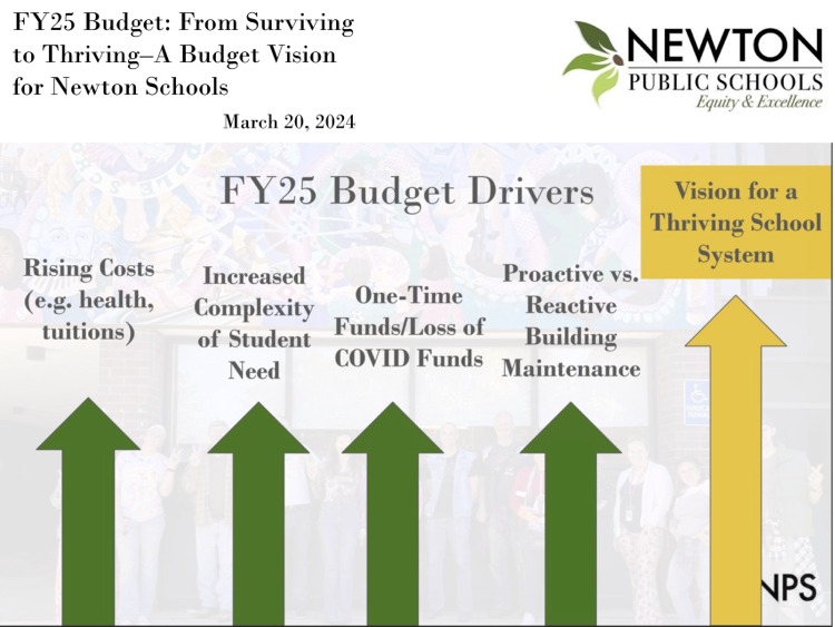 The School Committee meeting scheduled for March 20 will focus on the budget for Newton Public Schools (NPS) for Fiscal Year (FY) 2025, which corresponds to the academic year from fall 2024 through spring 2025. The proposed budget totals $286.3 million, which is a 5.17% increase over to the current year’s budget, inclusive of various special funding line items. The increase represents the largest year-over-year growth in the NPS budget in several years.