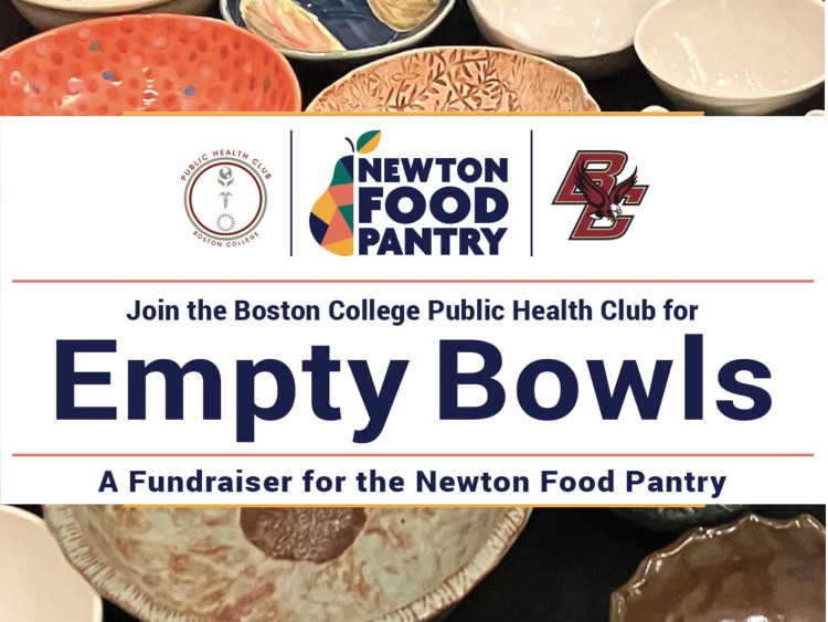 Empty Bowls is a grassroots movement around the world to raise money for food-related charities to care for and feed the hungry in their communities. The Boston College Public Health Club will host an Empty Bowls fundraiser for the Newton Food Pantry on April 24, 6PM-8PM at the Yawkey Athletic Center (Murray Room, 35–37 Campanella Way).