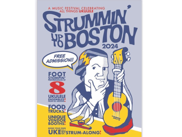 Eight ukulele ensembles(!) — including Newton’s own City Hall Strummers — will gather on June 9, 11AM-4PM indoors at Newton City Hall for Strummin’ Up to Boston, a free music festival celebrating all things ukulele. Food trucks, vendor booths, and a group musical strum-along led by local ukulele personality Danno Sullivan. The event is free, and all ages and strumming levels are welcome!