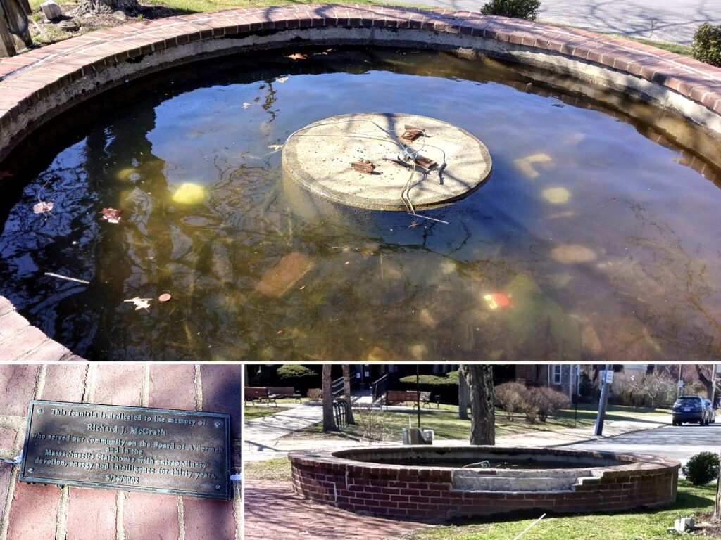 The destruction of Dick McGrath’s Memorial Fountain occurred in winter a year ago.