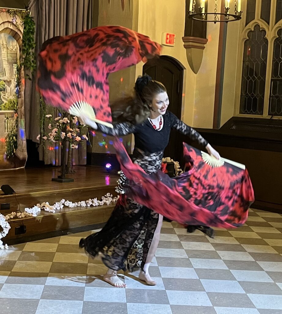 Scarves rippled, finger cymbals clinked, and bodies whirled at Grace Episcopal Church on April 6, as belly dancers performed during the Spring Hafla (“party” in Arabic). The sixth annual program, run by Newton’s Andromeda Belly Dance Boston, was supported by grants from the Newton Cultural Council and Newton Community Pride.