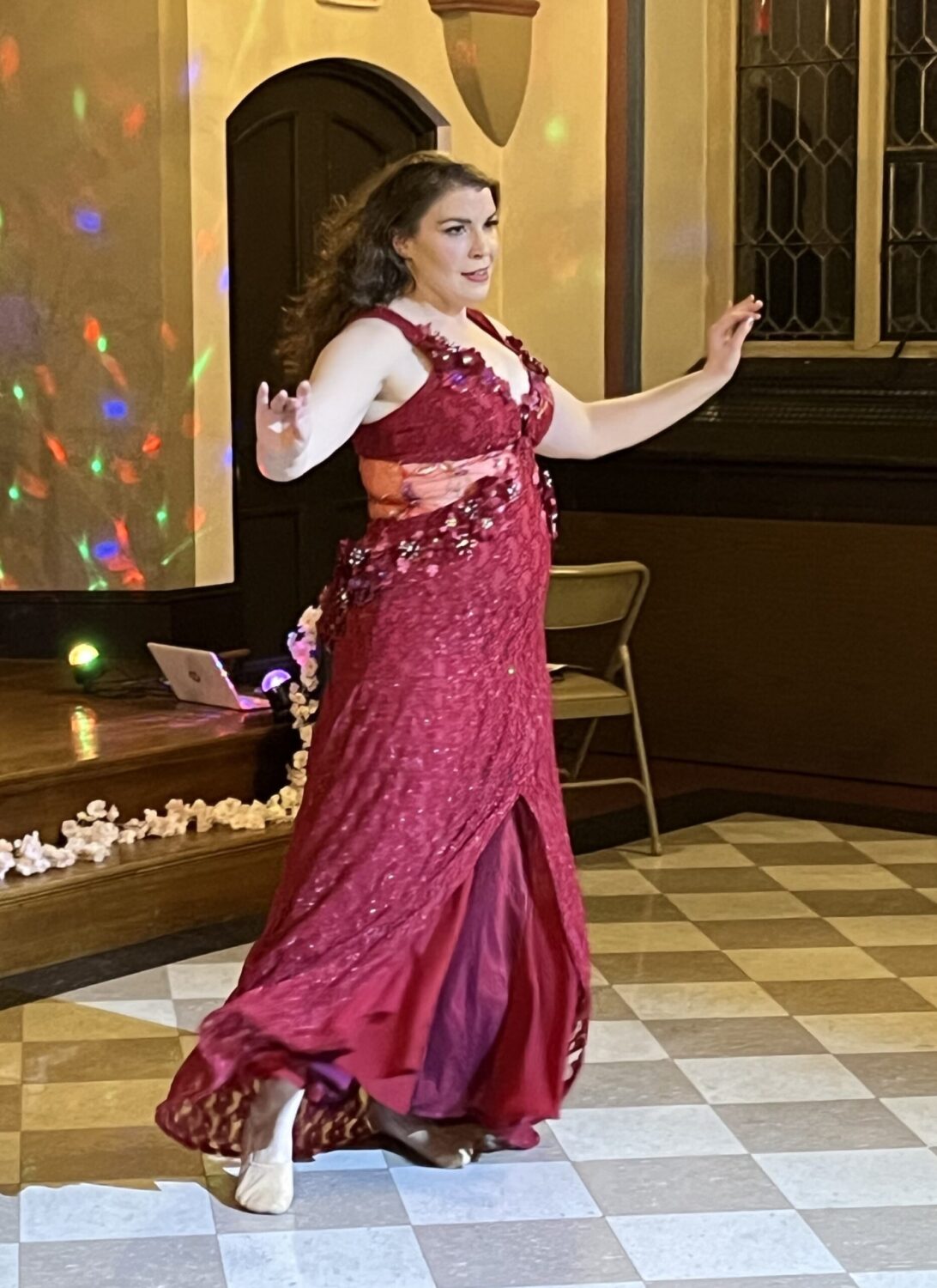 Professional dancer Sarah Horst, whose stage name is Soraya Jamal, performed to music by American violinist Lindsey Stirling. Although she usually dances to “traditional” music, she chose something different for the Spring Hafla.