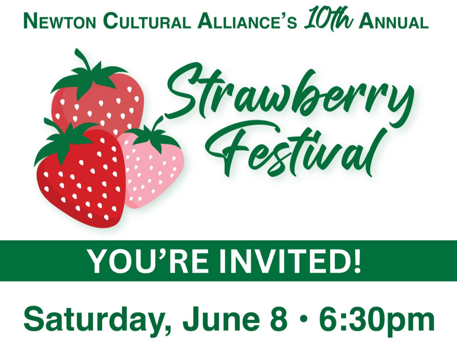 Newton Cultural Alliance (NCA) is hosting their 10th annual Strawberry Festival with food, drinks, and music. The event will take place on Saturday, June 8, 6:30PM at The Allen Center (35 Webster Street, West Newton). Tickets are $200.