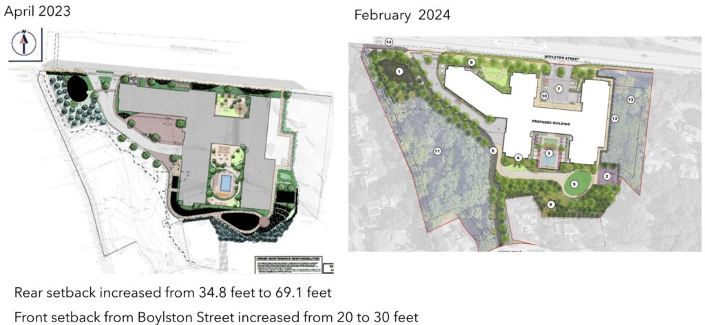 At its April 10 meeting, the Zoning Board of Appeals reviewed changes to plans for a large residential development at 528 Boylston Street (Route 9) and accepted public comment. The changes were in response to concerns raised by a neighborhood group, Newton Impact, which has organized opposition to the project.