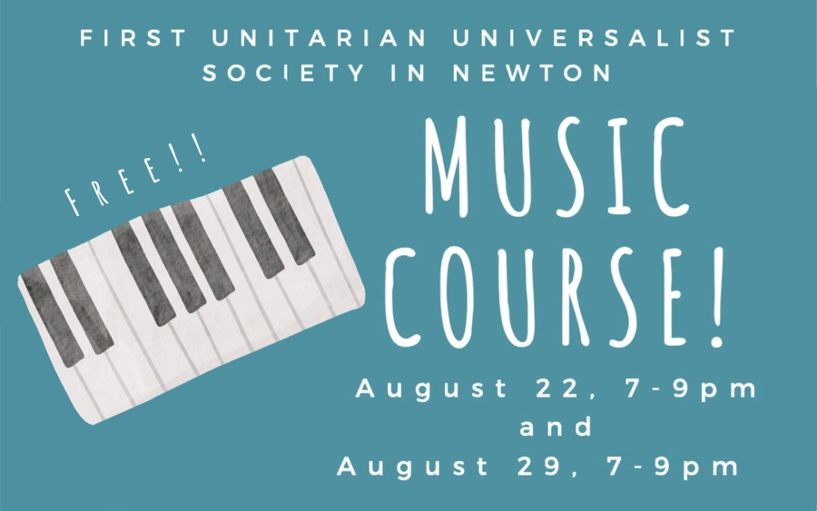 The music program at the First Unitarian Universalist Society in Newton is offering a music reading class in August. Beginners and more experienced singers are welcome. The course is free. There are two sessions — come to one or both, your choice. The two classes will be 7PM-9PM on Thursdays, August 22 and August 29. We’ll work on music-reading, perhaps on harmonizing, and, depending on who’s there, we may have a session on hymn-singing. Classes will take place in the FUUSN chapel (1326 Washington Street, West Newton).