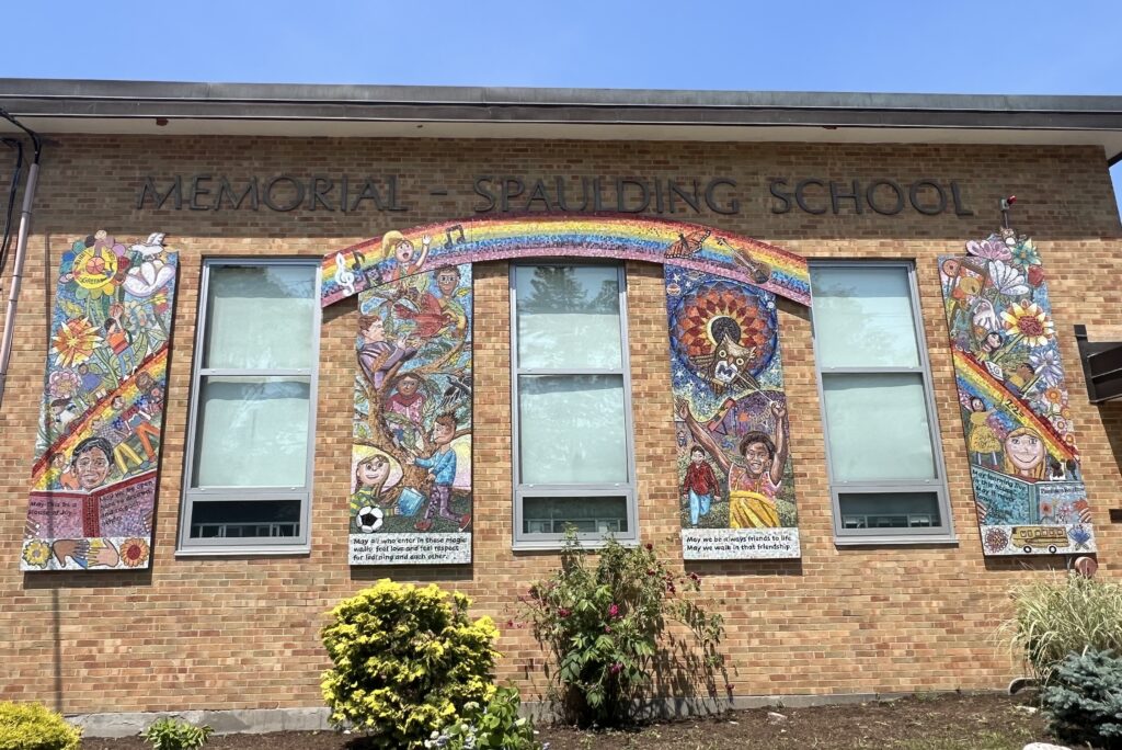 On Thursday, June 13, Memorial-Spaulding elementary school students, families, alumni, and educators, as well as Newton elected officials, gathered on a sunny late afternoon to unveil the latest Newton school mosaic by artist David Fichter, whose projects for NPS include murals at Burr, Bowen, and Ward elementary schools. The mood was warm and celebratory, with children presenting bouquets of flowers to various speakers that helped create and sponsor the project.