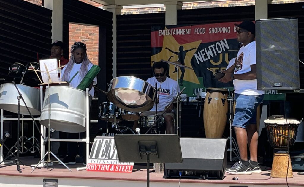 Irresistible beats from the Tempo Rhythm & Steel Band, savory aromas of food cooking, and tempting shopping booths welcomed visitors on Saturday to the Newton’s fourth annual Juneteenth Celebration.