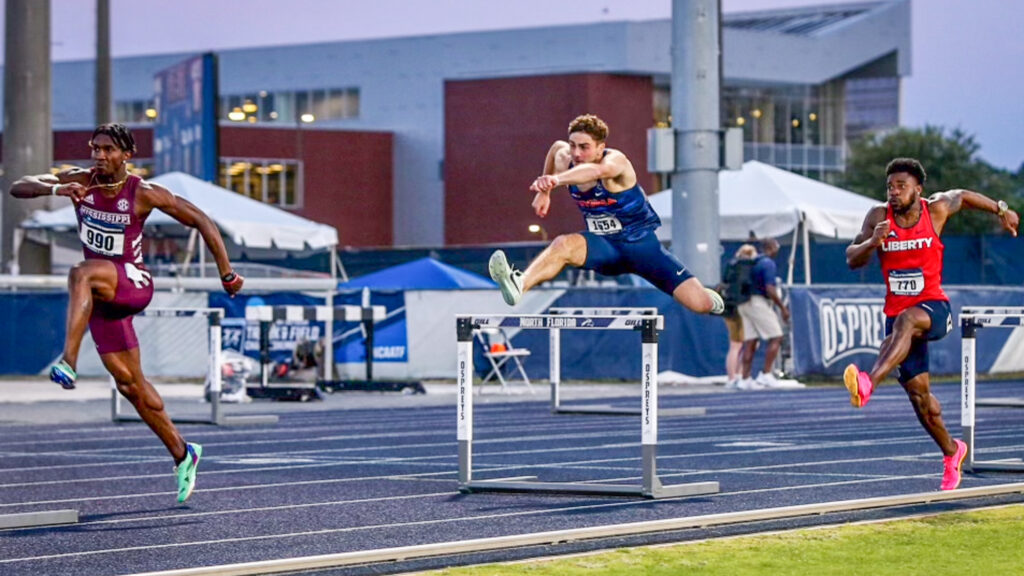 Sherman has improved his hurdling performances steadily over his college career, improving by 3.39 seconds from his opening performance of 54.73 in his freshman season in 2022. “My coach, Leron Bennett, who ran for Georgia and is a multi-time Olympic Trials qualifier, has been great. He’s a 48-second 400m hurdler, so he knows his stuff for sure,” said Sherman. “Most of my success, a lot of my success, is due to him. He’s just been one of the best mentors and coaches that I could ask for.”