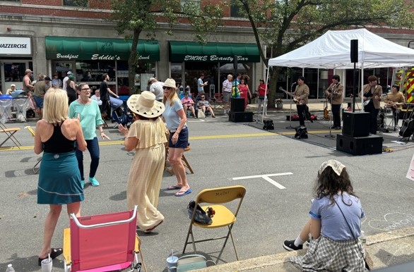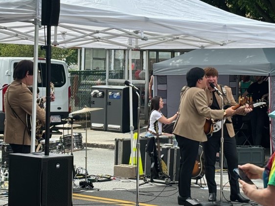 Transcending the generations, the Studio Two Tribute Band, faithfully recreating the early Beatles personae and music, attracted young and old Beatles fans who happily danced and sang in the middle of Watertown Street.