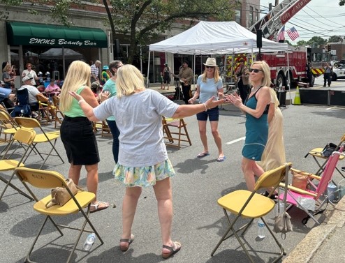 On a spectacular, sunny Sunday, hundreds of people came to enjoy the Nonantum Neighborhood Association’s thirteenth annual Village Day celebration in and around Colletti-Magni Park. Village Day is the second in the community’s three summertime events, between the annual Memorial Day parade and Festa Italiana in July. This year’s Village Day honored Susan Paley, retiring Senior Vice President of Community Relations for The Village Bank, and Joe Prestejohn, former owner of Cabot’s Ice Cream Shop. The Village Bank, located on Watertown Street, less than a block from Colletti-Magni Park, is the event’s sponsor, and its president, Joe DeVito, is a member of the Magni family.
