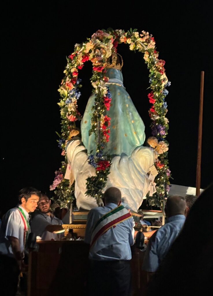 Outside, the Men’s Society team assigned to the Madonna struggles to remove the decorations and gradually positions her to fit through the church door to join parishioners who have come to worship her and give thanks for another successful Festa. When she comes to the altar next summer, she will be celebrating the 90th anniversary of the Festival.