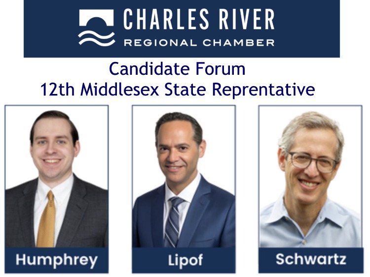 On July 18, the three candidates for 12th Middlesex District State Representative – Bill Humphrey, Rick Lipof, and Greg Schwartz – met online to answer questions posed by Greg Riebman, President of the Charles River Chamber of Commerce. This is the first competitive election for the 12th Middlesex District seat…