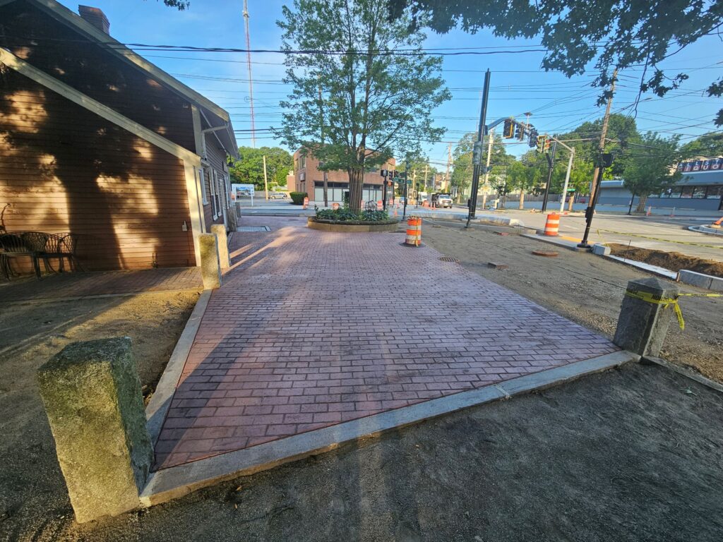 The goal of this $3.1 million project, now 60% complete, is to raise the intersection in order to calm traffic, and the project will also provide landscaping and street beautification, more accessibility in compliance with the Americans with Disabilities Act (ADA), new traffic signal equipment, and upgraded drainage and stormwater control. Preliminary construction started in November 2023, after two years of design, community input, and detailed planning. In the spring of 2024, construction began in earnest and is set to be finished by Upper Falls Village Day, on September 15.