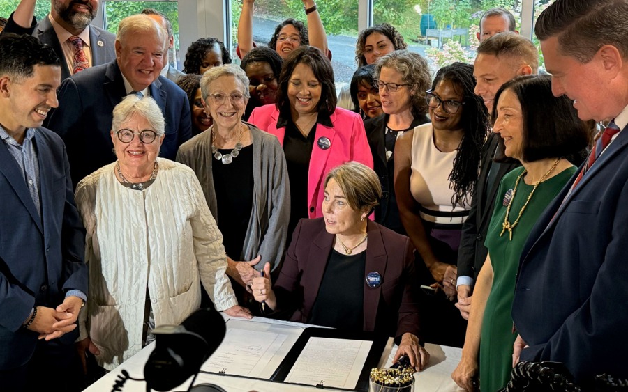 Local and state elected officials and affordable-housing advocates crowded into three large reception rooms at the Golda Meir Hour on August 6 to celebrate as Governor Maura Healey signed the recently passed Affordable Homes Act. Hailed as “the most ambitious legislation in Massachusetts history to tackle the state’s greatest challenge — housing costs,” according to the State House and the Governor’s office, the legislation provides $5.16 billion in bond expenditures and tax credits to incentivize housing construction. The new law also offers 49 new policy initiatives.