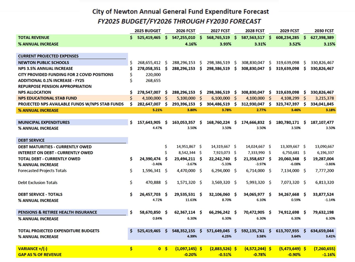 Mayor Fuller highlighted the importance of balancing the City’s immediate needs with long-term financial stability. She emphasized that while Newton’s financial outlook is solid, the City will need to innovate and find efficiencies, and the City and its residents will face choices. “None of them will be easy; some may be controversial.”