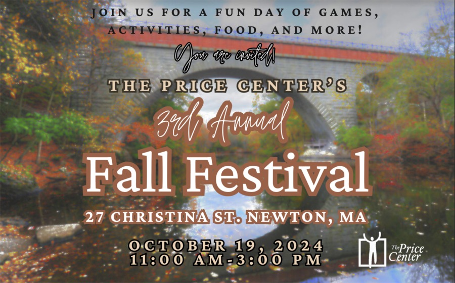 The Price Center invites all to its 3rd Annual Fall Festival on October 19, 11AM-3PM at 27 Christina Street in Newton. Celebrating the beauty and warmth of its communities, The Price Center is honored to host not only its families and loved ones, but also the welcoming and wonderful communities…