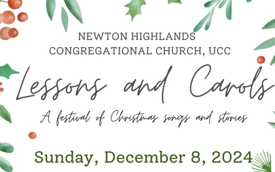 Newton Highlands Congregational Church invites the community to a service of Lessons and Carols on Sunday, December 8, at 3PM, at the church (54 Lincoln Street, Newton Highlands).