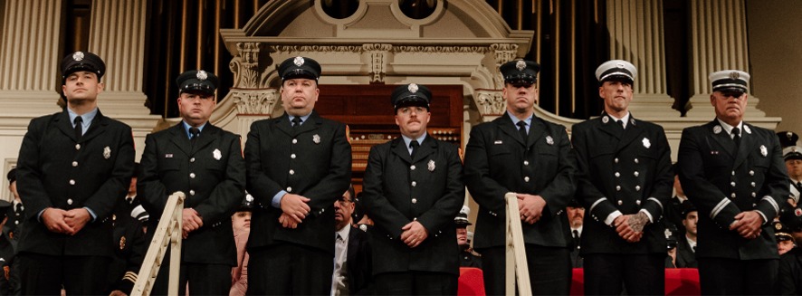 The Newton Fire Department received a Group Citation for Meritorious Conduct at the 35th annual Massachusett Firefighter of the Year Awards ceremony. The award cited Captain Karl “Gus” Svartstrom, Lieutenant Joseph DeLuca, and Firefighters Richard Busa, Ryan Doherty, Michael Pohlman, Lawrence Quinn, Andrew Sbordone, and Joseph Yerardi for their service in an incident last winter in which two people were pulled from a house fire.