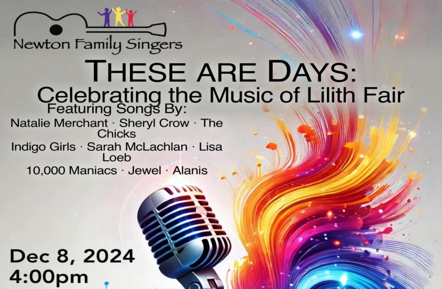 Join the Newton Family Singers Sunday, December 8 at 4PM at the Casey Theater at Regis College (235 Wellesley Street, Weston) to celebrate the music of Lilith Fair. Instead of focusing on a single artist, this concert will honor several talented musicians who were part of the traveling music festival, Lilith Fair.