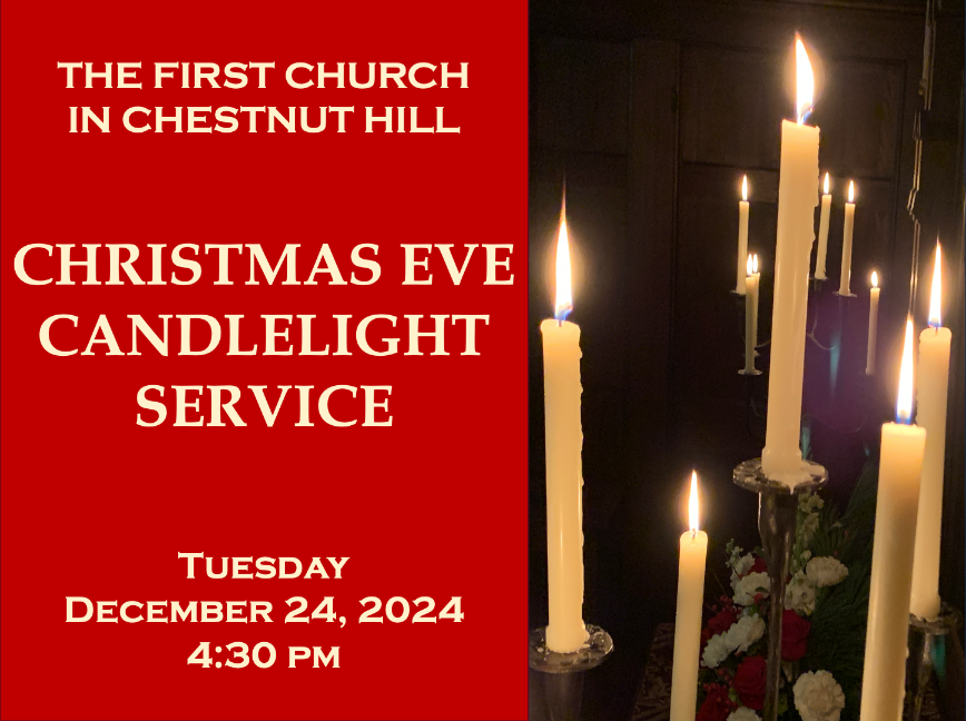 On Tuesday, December 24 at 4:30 PM, First Church in Chestnut Hill will hold its annual Christmas Eve Candlelight Service. The service, which is free and open to the public, includes favorite carols, readings from the Christmas story, and culminates in candlelight with the entire congregation singing Silent Night. All…