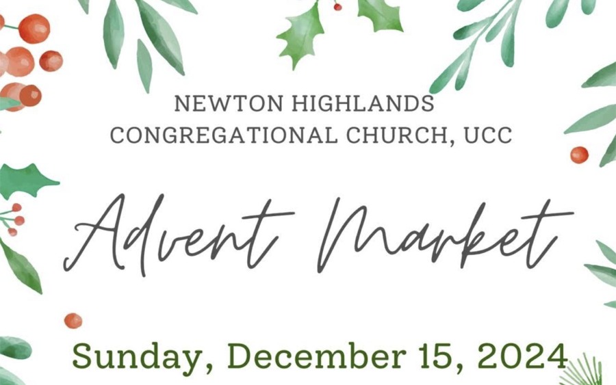 Newton Highlands Congregational Church invites the community to an Advent Market on Sunday, December 15, at 11:15AM, at the church (54 Lincoln Street, Newton Highlands).