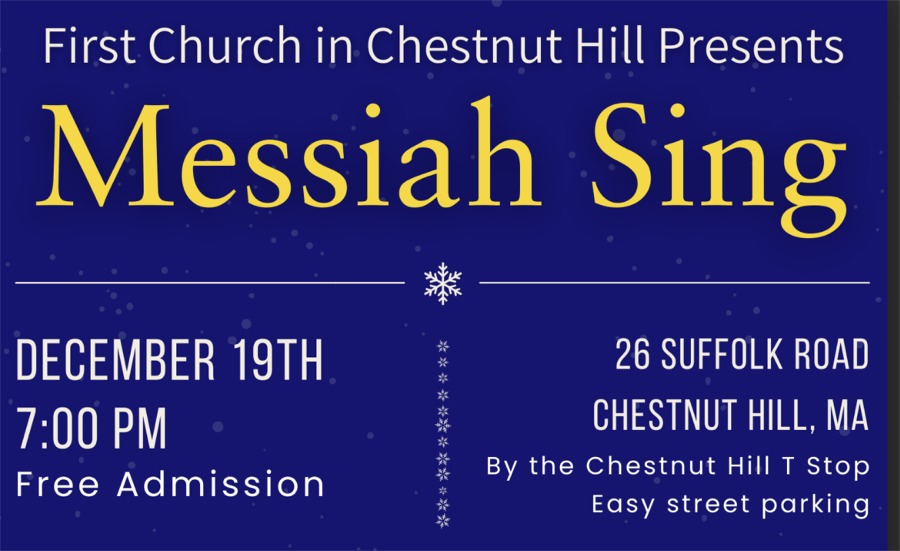 First Church in Chestnut Hill will host a Messiah Sing on December 19 at 7PM. The event is free and open to the public. Bring your score, your friends, and sing along with our professional quartet as we bring Handel’s beloved music to life. Or just listen and enjoy All…