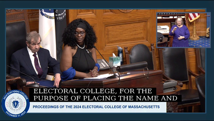 Sharon Stout was one of the eleven electors of Massachusetts who convened at the State House on Tuesday, December 17, to cast ballots for President and Vice President of the U.S. in the 2024 election. That day, she was elected president of Electoral College and presided over the event, in…