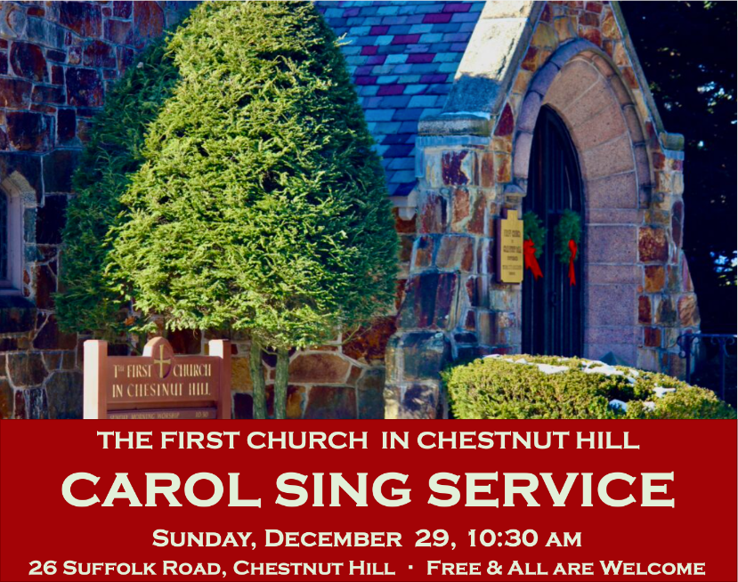 The First Church in Chestnut Hill will hold its annual Carol Sing Service on Sunday, December 29 at 10:30AM. Come enjoy the final Sunday of 2024 singing Christmas favorites and enjoy coffee, cookies, and refreshments afterward in the Parish Hall. All are welcome! First Church in Chestnut Hill is located…