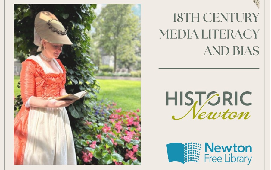 Historic Newton will present a free lecture — 18th Century Media Literacy and Bias — at the Newton Free Library’s Druker Auditorium on January 16 at 7PM. The presenter will be Michele Gabrielson, a local history teacher and historic interpreter of the 18th century. She will analyze perspective, language, and…