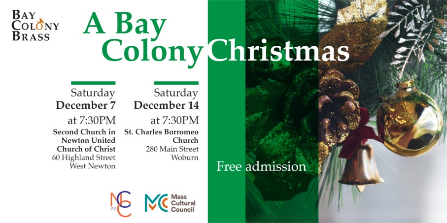 Music director Philip Sanborn will lead Newton’s 20-member Bay Colony Brass in a free, family-friendly Christmas concert on Saturday, December 7 at 7:30PM at Second Church (60 Highland Street, West Newton). The concert will include Christmas favorites ranging from Tchaikovsky’s The Nutcracker to modern favorites — and will feature an audience…
