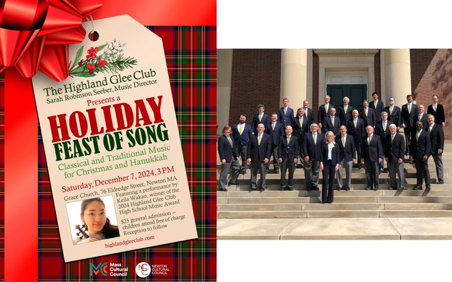 Highland Glee Club‘s holiday concert this year is A Holiday Feast of Song, on Saturday, December 7, at 3PM at Grace Church (76 Eldredge Street, Newton Corner). Tickets are $20 in advance, $25 at the door, 18 and younger free. Featuring traditional carols; a world premiere composition for Chanukah by Dan…
