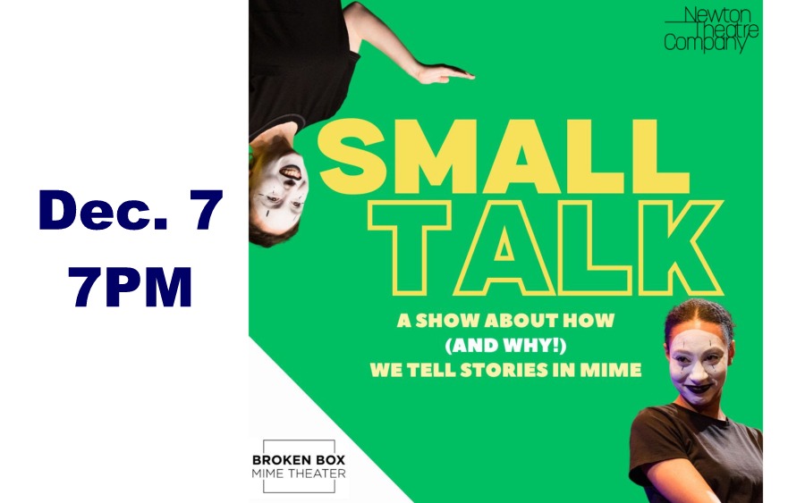 Newton Theatre Company will host Broken Box Mime Theatre performing Small Talk: A Show About How (And Why!) We Tell Stories in Mime on one night only — December 7 at 7PM at St. John’s Episcopal Church (96 Otis Street, Newtonville).