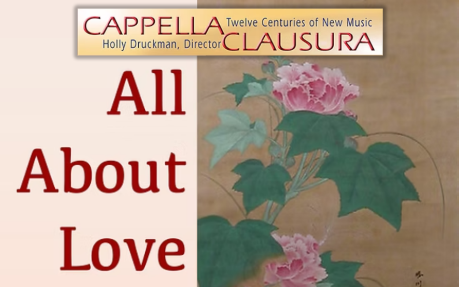 Capella Clausura will present a concert, All About Love, challenging male gaze by centering the voices of women and gender non-binary composers in the program. This concert will include music by Evelin Seppar, Modesta Bor, Rafaella Aleotti, Laura Nevitt, and others. It will take place on Saturday, February 15 at 4PM at Grace Episcopal Church (76 Eldredge Street, Newton Corner). Tickets are $35 for General Admission/Adult, $15 for Under 30/Student.