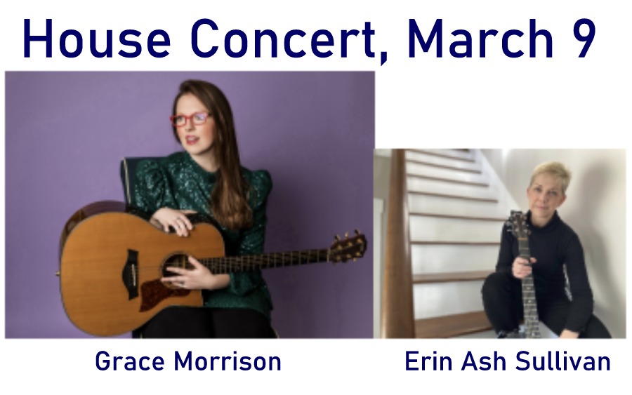 In association with Boston Area Coffeehouse Association, Sailing into Song House Concerts will present a house concert by Grace Morrison, with Erin Ash Sullivan opening, on March 9 at 2PM at a home in Newton. Suggested donation is $25, and all donations go to the performers. To receive an invitation, send name and email address to [email protected].