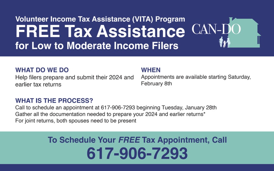Newton’s nonprofit CAN-DO is partnering with the IRS Volunteer Income Tax Assistance Program (VITA) to offer free tax help to people with low to moderate incomes (generally, $74,000 and below) who are seeking assistance in preparing and submitting their tax returns for 2024 and earlier.