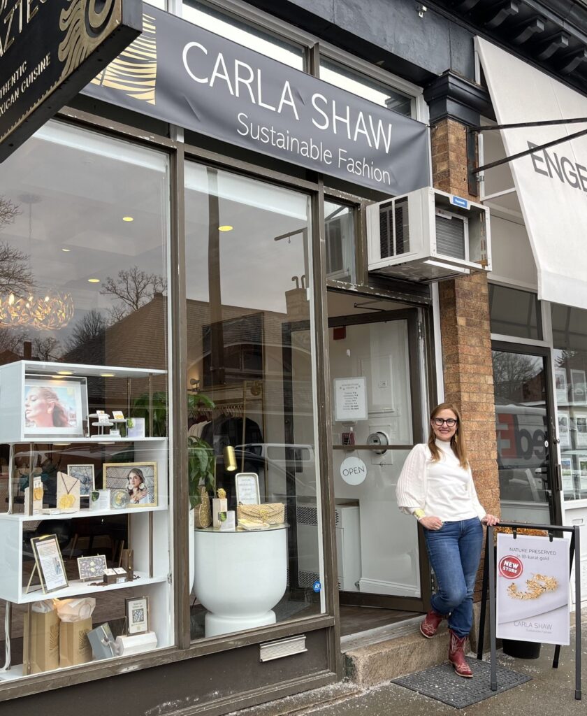While some jewelry is inspired by nature, every glittering accessory at Carla Shaw Sustainable Fashion in Newton Centre literally has a piece of nature at its core.
