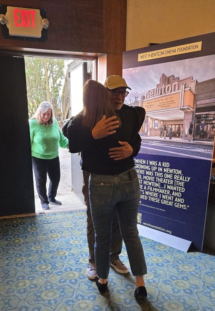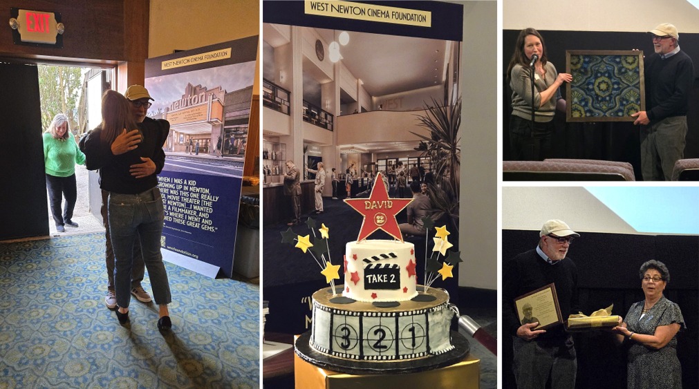 After the ravages of the pandemic forced Bramante to sell the theater, locals had kicked off a campaign to save the 85-year-old neighborhood gem from the wrecking ball. They succeeded, and in August 2024 the West Newton Cinema officially became the property of the nonprofit WNCF. At Saturday’s surprise party, WNCF Board President Elizabeth Heilig said, “We wouldn’t be here today if David hadn’t had the vision for a non-profit to take over, and we thank him for his commitment to keeping the theater open while WNCF raised the funds to purchase it.”