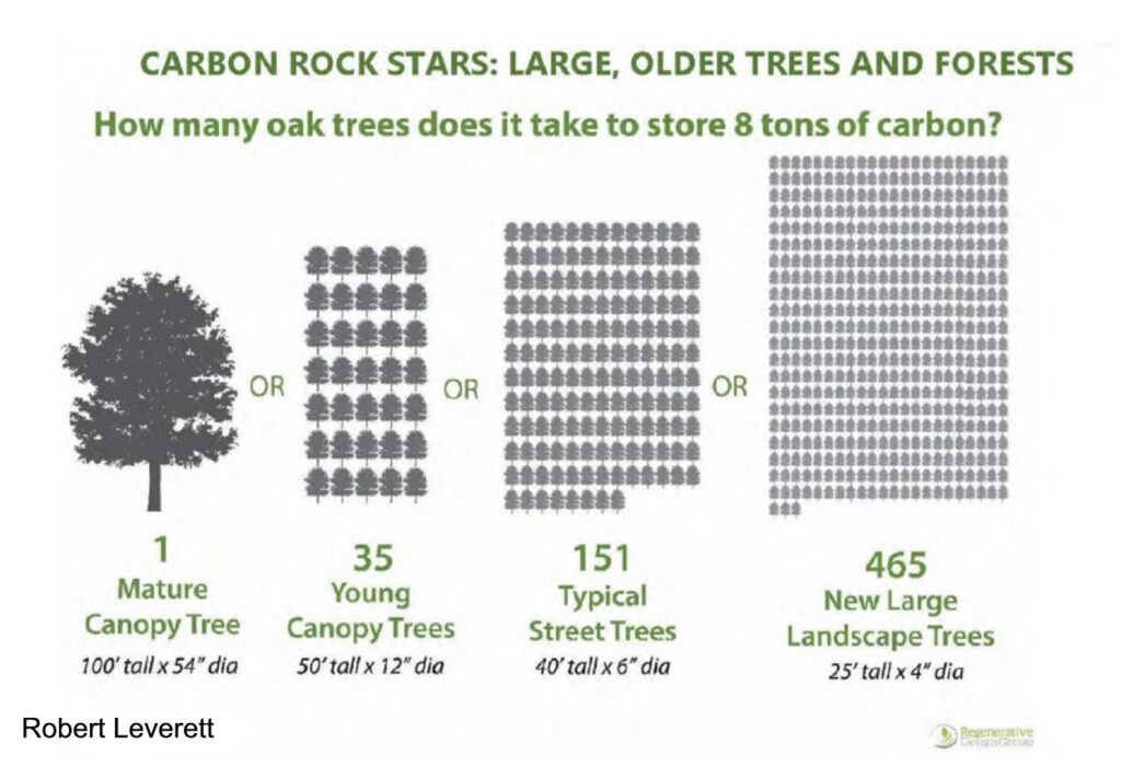“Maintaining large trees provides far more benefits than planting small ones,” said Moomaw. He said newly planted, smaller trees hardly reach their full potential before dying, especially in urban areas. When roots are underexposed and hidden under concrete, it prevents trees from getting the proper water they need to grow and from living long enough to remove as much carbon dioxide from the atmosphere as a more mature tree can.