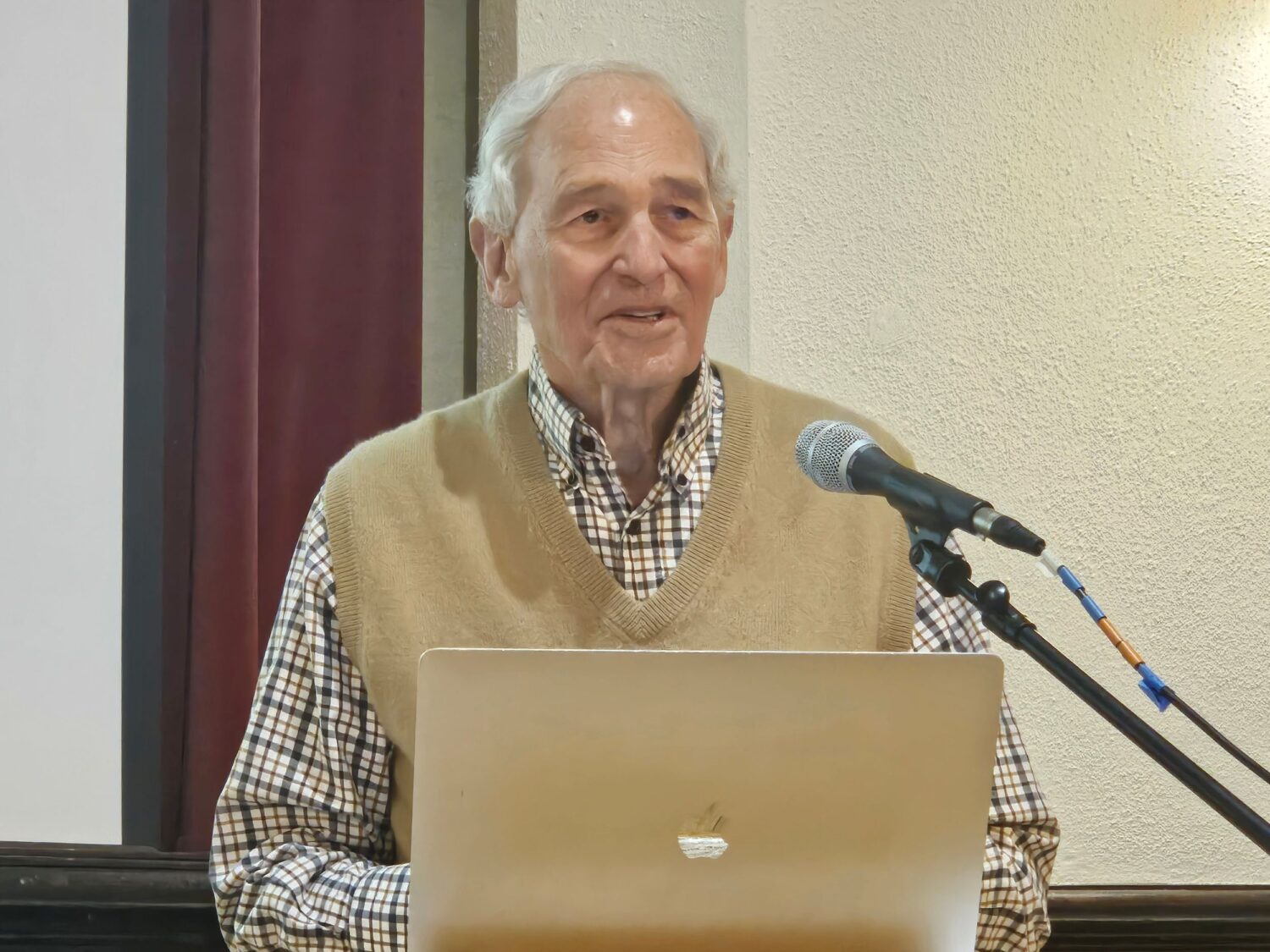 Dr. William Moomaw speaking at the First Unitarian Universalist Society in Newton, March 16, 2025 on "Why Protect Newton's Trees?" (photo: Bruce Henderson)