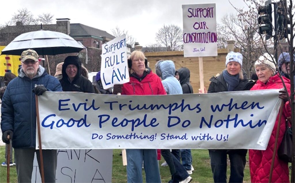 Josephine MacNeil, the longtime head of CAN-DO (Citizens for Affordable Housing in Newton Development Organization) told Fig City News, “The number of people who attended the first one was an indication of how hungry people were to do ‘something’ to demonstrate their frustration. I am pleased that the numbers increased each week.” She was particularly impressed by the number of attendees on March 29 “despite the inclement weather.” At the same time, she “would like to see signage on the roll back of rights gained during the Civil Rights movement.” Ms. MacNeil plans to be at ongoing standouts.