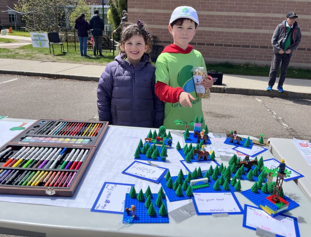 The Clay siblings — Thomas, 9, and Caroline, 7 — whose grandparents are members of GreenNewton, came up with the idea to run a LEGO booth after learning about climate change.