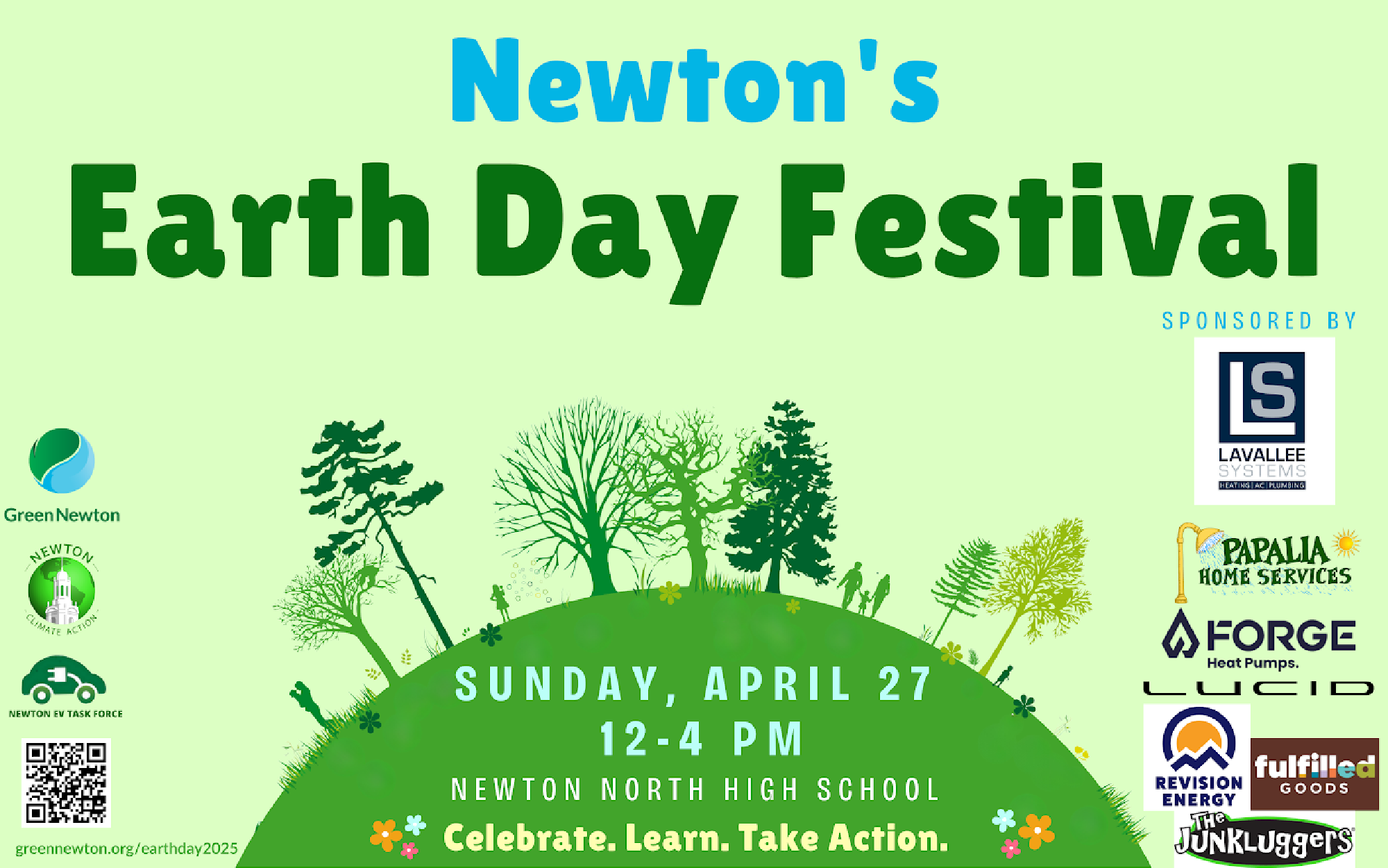Celebrate with Green Newton at the Earth Day Festival on Sunday, April 27, 12-4PM at Newton North High School (457 Walnut Street, Newtonville). Learn how to go green, live more sustainably, and save energy in your home and on the road!