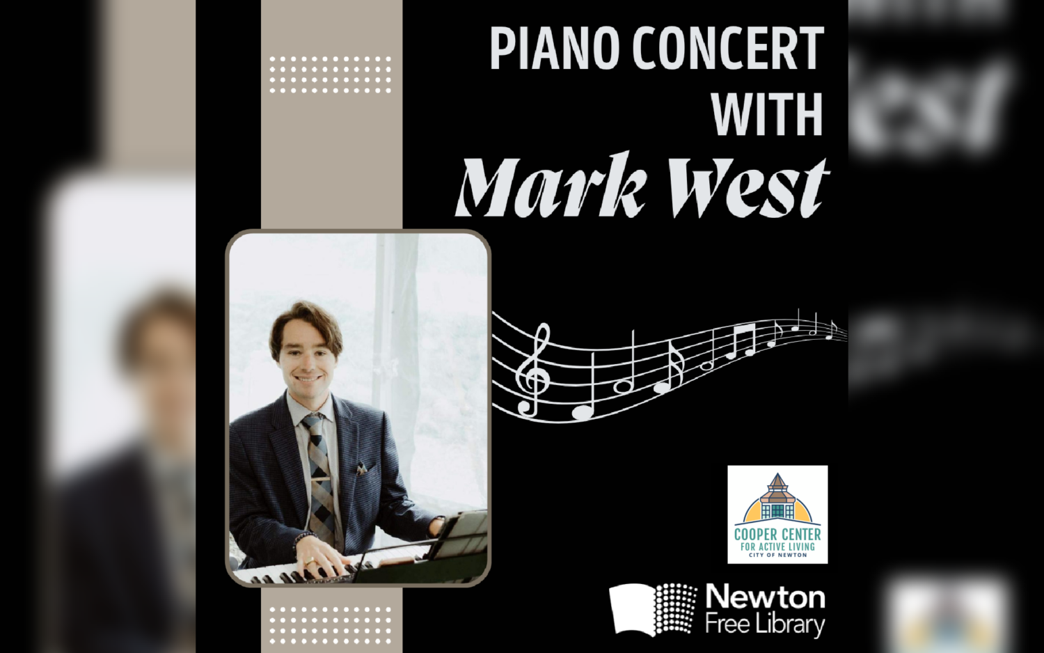 The Newton Free Library will present a Piano Concert with local musician Mark L. West featuring solo piano works ranging from classical music by Chopin and Mozart to “turn of the century” ragtime by Scott Joplin and jazz standards by Duke Ellington, Hoagy Carmichael, and other artists. It will take place on Tuesday, April 15, 1-2PM at the Newton Free Library (330 Homer Street, Newton Center).