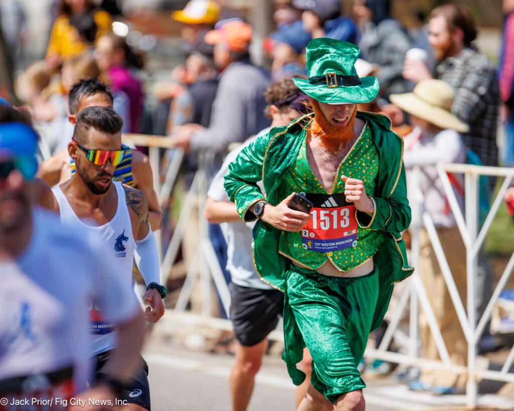 McIntyre’s impressive feat gained attention from spectators and runners alike as he completed the historic course in his eye-catching leprechaun attire. During his high school years at Newton North, McIntyre played soccer in the fall and specialized in the 800-meter event for both the indoor and outdoor track teams for the Tigers — less than 1/50th of the marathon distance.