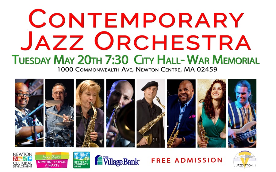 Duke Ellington, Cab Calloway, Glenn Miller, Benny Goodman — These names evoke a bygone age of classic jazz and swing. Fans of those genres are in for a treat at 7:30PM on Tuesday, May 20, when the Contemporary Jazz Orchestra East (CJO East) performs a free concert in Newton City Hall’s War Memorial Auditorium, as part of this year’s Linda Plaut Festival of the Arts.