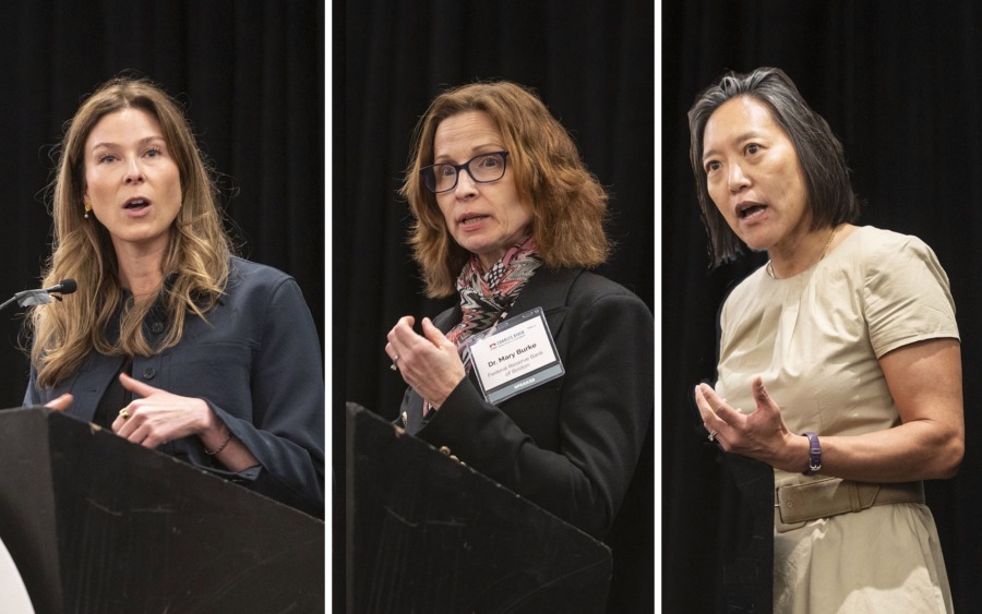A large, lively crowd of local business and political leaders filled the Needham Sheraton ballroom on Wednesday, May 14, to hear Dr. Mary Burke, the Principal Economist and Policy Advisor at the Federal Reserve Bank of Boston; Ashley Stolba, the Commonwealth’s Interim Secretary of Economic Development; and Yvonne Hao, former Secretary of Economic Development speak at the Charles River Regional Chamber’s annual Spring Business Breakfast.