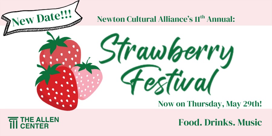 The Newton Cultural Alliance will host the 11th annual Strawberry Festival on Thursday, May 29, 6:30PM at The Allen Center (35 Webster Street, West Newton). A celebration deeply rooted in the community, the Strawberry Festival will include a rich harvest of local music, visual art, and cherished time with friends and neighbors. Enjoy a…