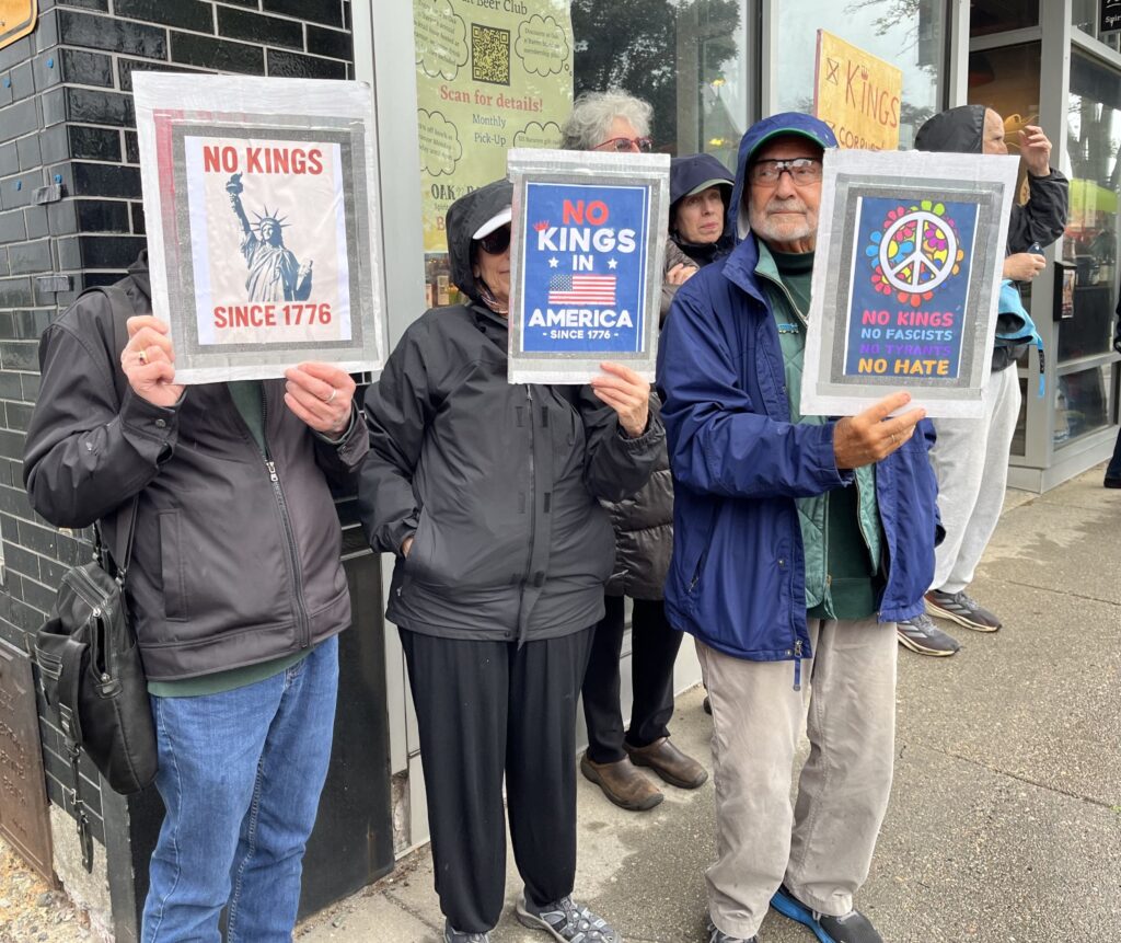 After attending a No Kings event in Waltham last month, Rob Greenly said he wanted to participate in Newton’s protest. He was inspired partly by a quote found on NoKings.org and attributed to Harvard University political scientist Erica Chenoweth: “It only takes 3.5 percent of the population engaging in sustained, strategic protest against authoritarianism to achieve significant political change.” Therefore, he noted, having a large turnout was critical.
